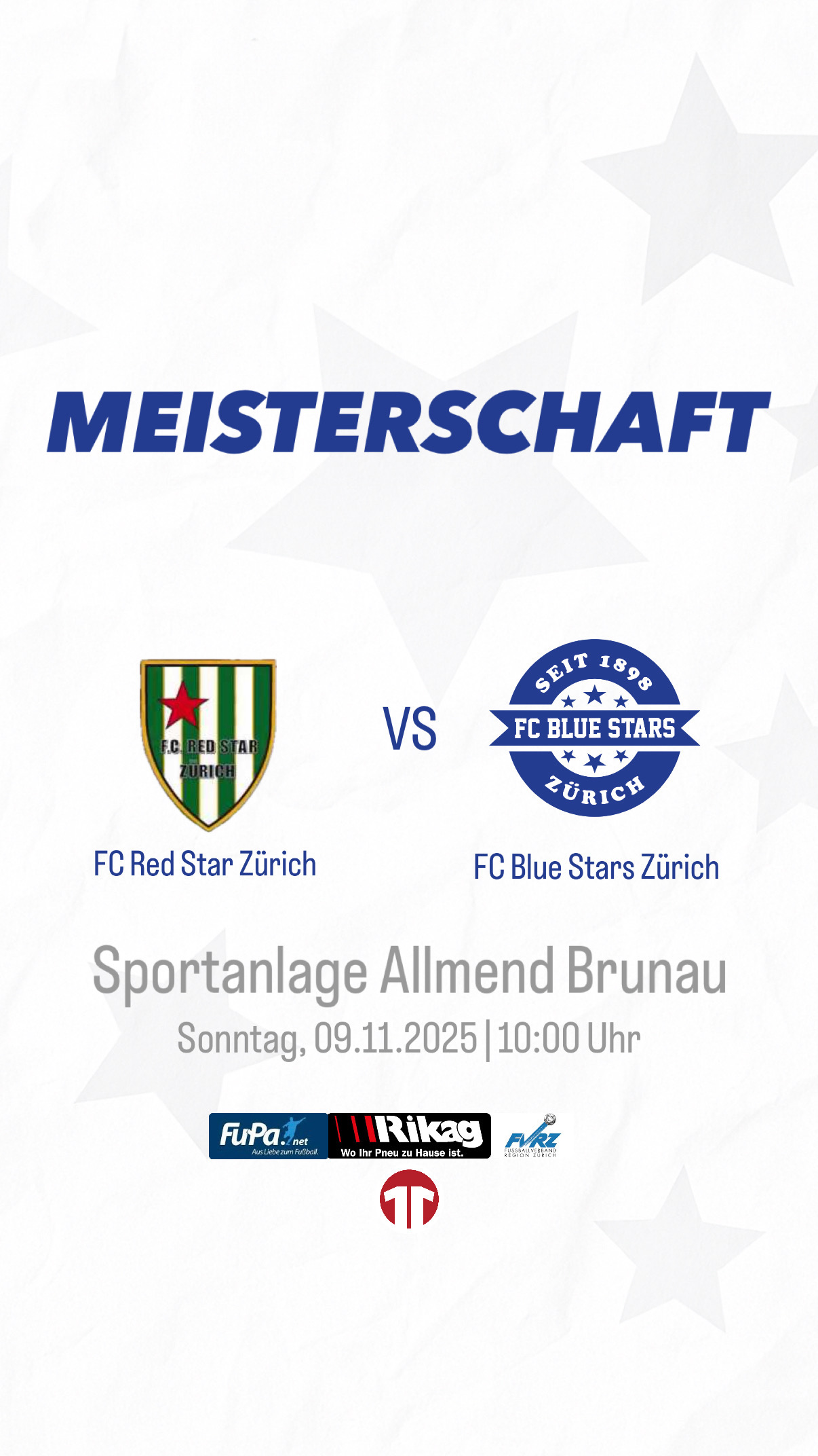 Sonntag, 09.11.25 auf der Sportanlage Allmend Brunau. Spielbeginn ist um 10:00 Uhr.