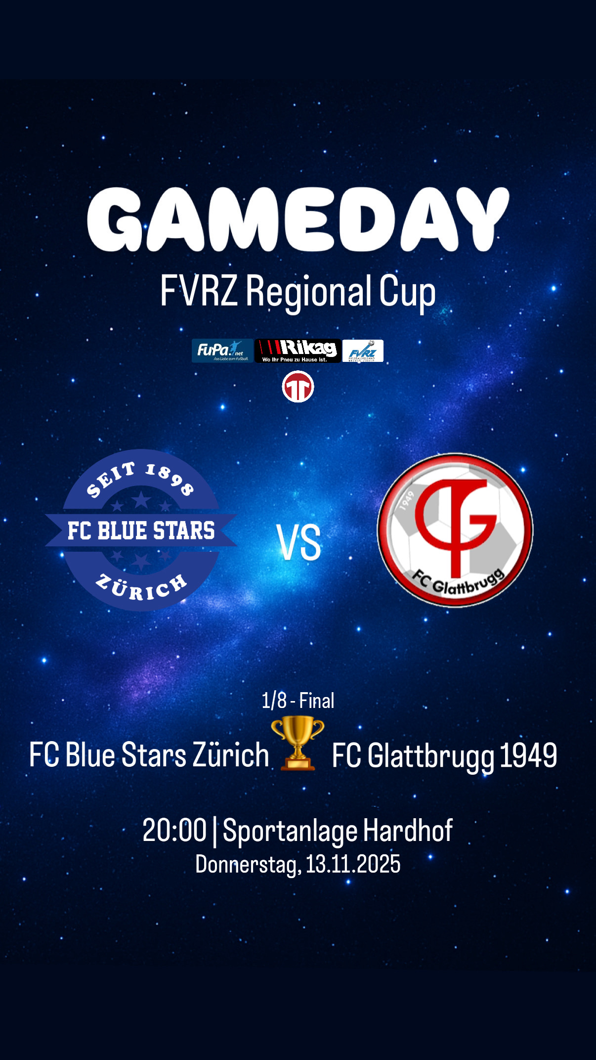 Am Donnerstagabend empfangen wir den 2.-Ligisten FC Glattbrugg auf der Sportanlage Hardhof zum Cup-Achtelfinal.